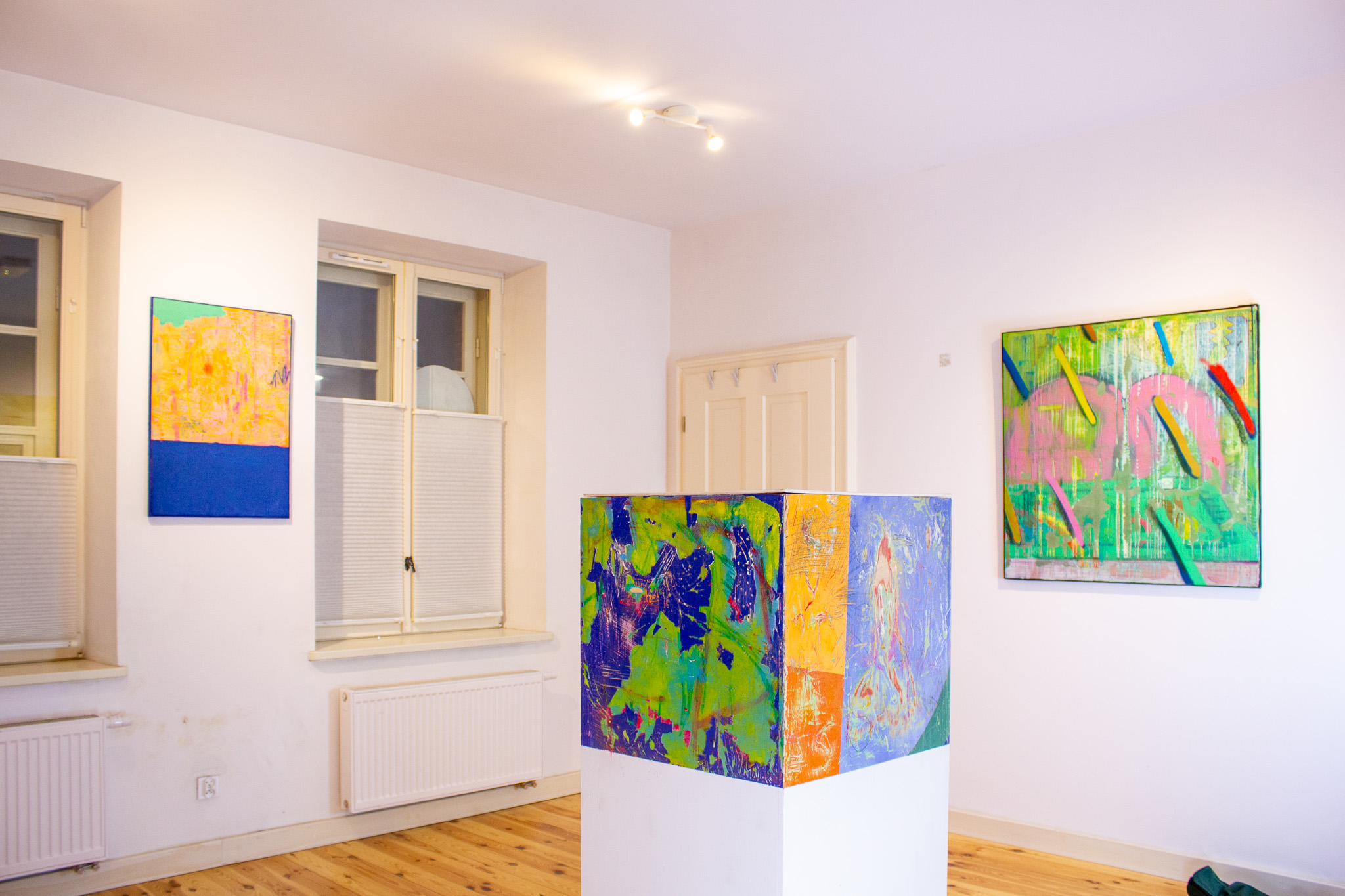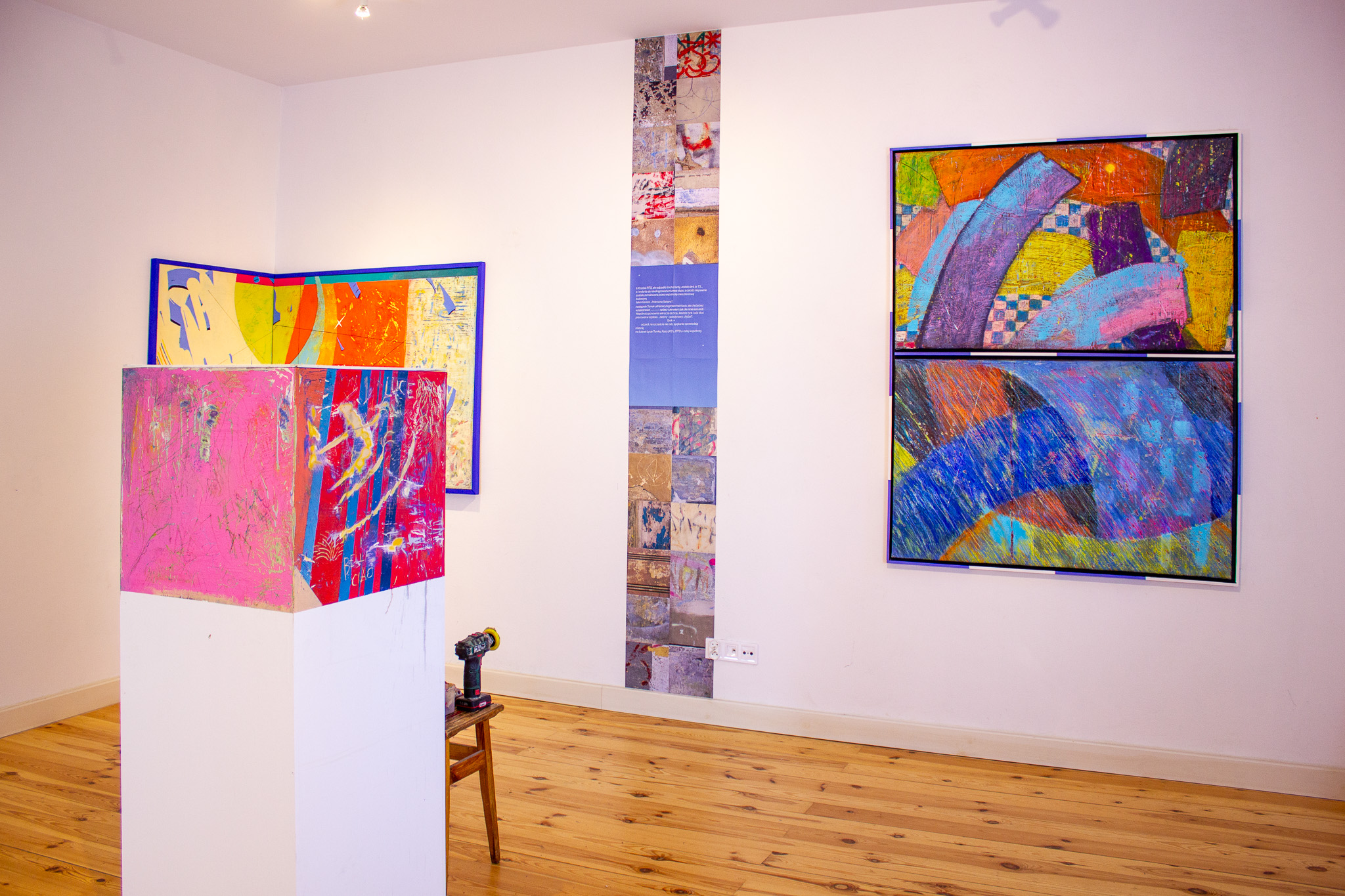 The exhibition “O-S-A” – The Tamed Retina Associates – explores how the eye needs time to become familiar with visual chaos, giving it a slight chance to recognize its hidden beauty. The project is inspired by the everyday transitions of color and form I observe each morning on the walls of Mielczarkiego Street in Łódź while walking my dog, Franek.